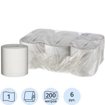 Бумага туалетная д/дисп 1сл бел макул втул 200м 12рул/уп 200W1 С КЗН