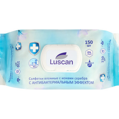 Салфетки влажные Luscan антибактериальные с крышкой 150шт/уп