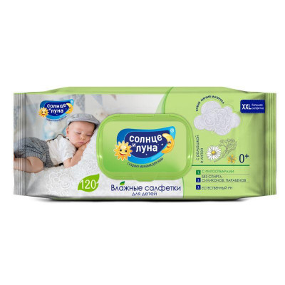 Салфетки влажные СОЛНЦЕ И ЛУНА детские 0+ с ромашкой и липой с крышк 120шт