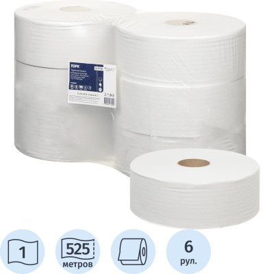 Бумага туалетная Торк Стандарт T1 1сл бел вторич втул 525м 120195 6рул