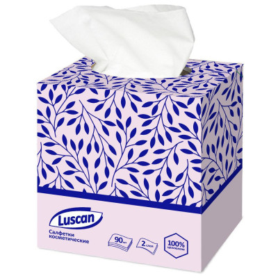 Салфетки косметические Luscan 2сл 90шт/уп в кубе белые
