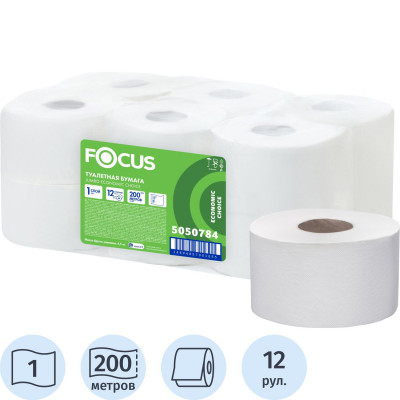 Бумага туалетная д/дисп Focus Eco Jumbo 1сл бел цел 200м 12рул/уп 5050784