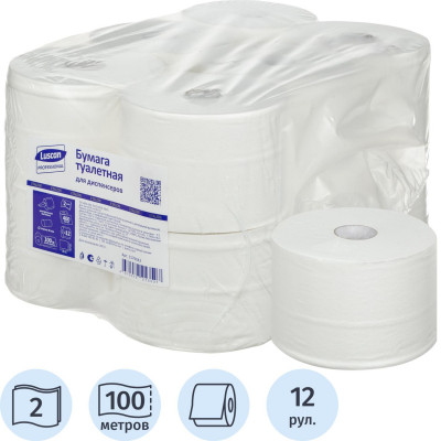 Бумага туалетная д/дисп Luscan Prof Etalon ЦВ 2сл бел цел 100м 12рул/уп