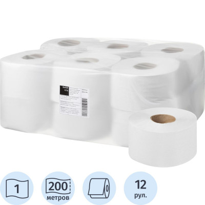 Бумага туалетная д/дисп Protissue 1сл бел цел 200м 12рул/уп С190