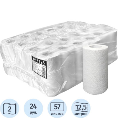 Полотенца бумажные 2сл белые вторичная целлюлоза 12,5м 24рул/уп Спб