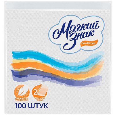 Салфетки бумажные Мягкий знак белые, 2 слоя, 24х24, 100 листов/уп.
