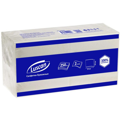 Салфетки бумажные Luscan 2сл 24х24см белые 250шт/уп