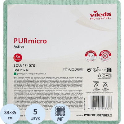 Салфетка хозяйственная ПУРМикро зеленая 5 шт/уп