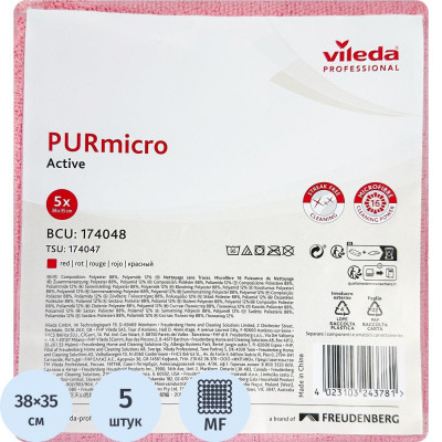 Салфетка хозяйственная ПУРМикро красная 5 шт/уп