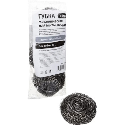 Губка-мочалка металл для мытья посуды 60x60x35мм 18г нерж.сталь 3шт/уп