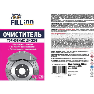 Очиститель тормозных дисков FILL INN FL018 аэрозоль 520 мл