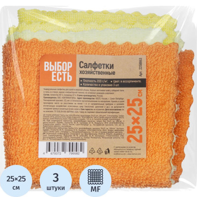 Салфетки хозяйственные Выбор Есть из микрофибры 25х25см, 200г/м2, 3шт/уп
