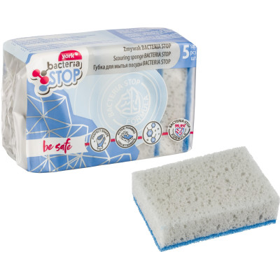 Губки для мытья посуды YORK бактерия стоп антибактериальные 5шт/уп