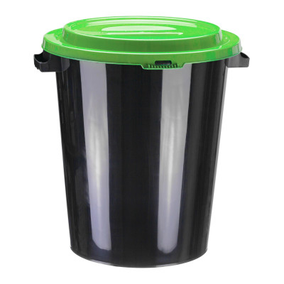 Бак для отходов 40л пластик, черный с зеленой крышкой М 2392