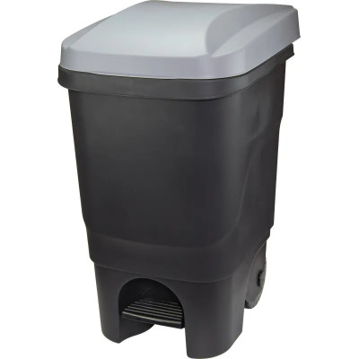 Контейнер-бак мусорный IDEA 60л с педалью на колесах серая крышка