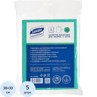 Салфетки хозяйственные Luscan Professional виск 90г/м2 30х38 5шт/уп зеленые