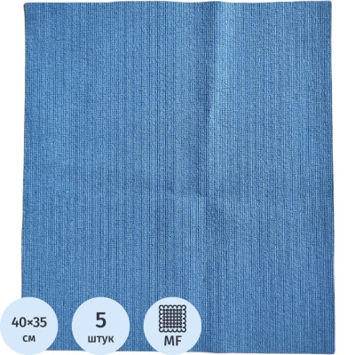 Салфетки хозяйственные из микрофибры ПУ покр 250г/м2 35х40см 5шт/уп синие