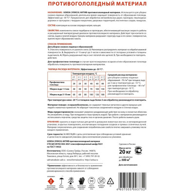 Реагент противогололедный UOKSA Актив мешок 20 кг до -30С_СПБ