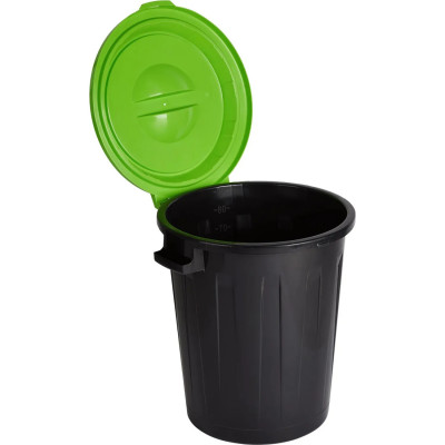 Бак для отходов 90л пластик черный, с зеленой крышкой