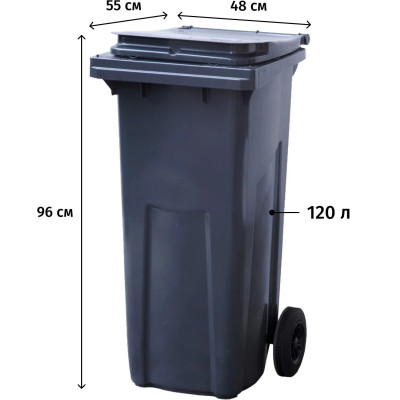 Контейнер-бак мусорный 120л, на 2-х колёсах, с крышкой, серый_28559_СПБ