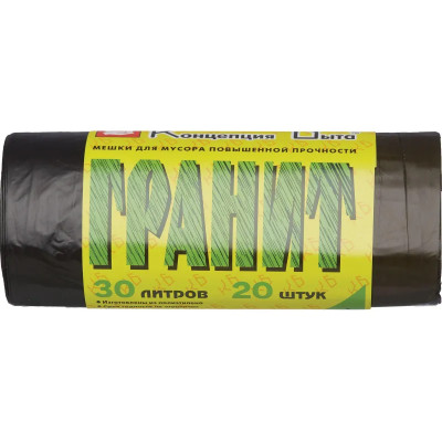 Мешки для мусора ПНД 30л 14мкм 20шт/рул черные 50x60см Гранит с зав-ми_СПБ