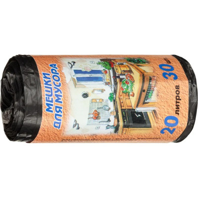 Мешки для мусора ПНД 20л 10мкм 30шт/рул черные 42,5х49,5см_СПБ