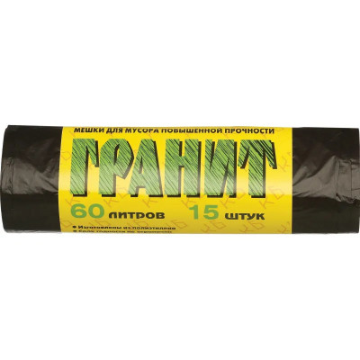 Мешки для мусора ПНД 60л 11мкм 15шт/рул черные 58x68см Гранит_СПБ