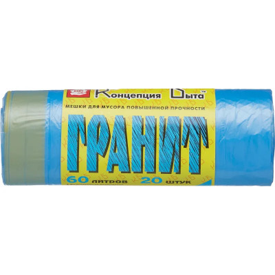 Мешки для мусора ПНД 60л 14мкм 20шт/рул синие 56x68см Гранит с зав-ми_СПБ