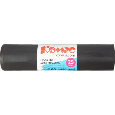 Мешки для мусора ПВД 60л 45мкм 25шт/рул черные 60x70см Комус_СПБ