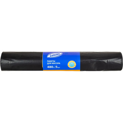 Мешки для мусора ПВД 480л 65мкм 5шт/рул черные 130х170см Luscan_СПБ