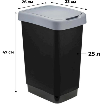Контейнер для мусора Ирис пластик с металл покрытием прямоуг, метал-черный