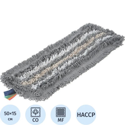 Насадка МОП плоский 50х15 см, хлопок+серая вискоза+микроф, карман AS3702