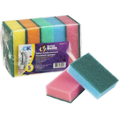Губки хозяйственные 96x64x27мм 5шт/уп