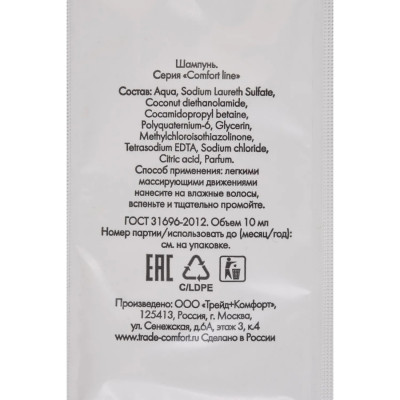 Шампунь COMFORT LINE, саше 10мл,500шт.