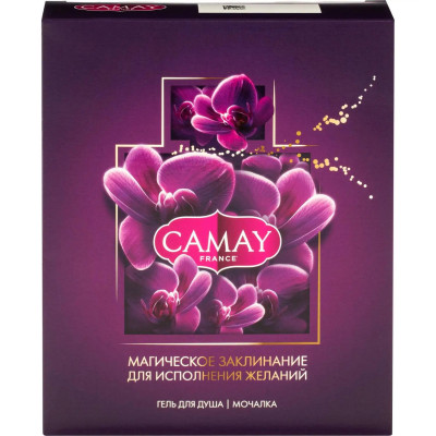 Подарочный набор Camay Magique женский гель для душа + мочалка шар для тела