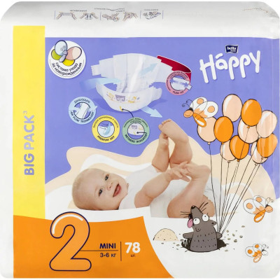 Подгузники для детей Mini, 78 шт./уп., вес 3-6 кг с эластичными боковинками