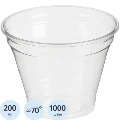 Стакан одноразовый 200мл. прозрачный ПЭТ- шейкер 1000шт/кор