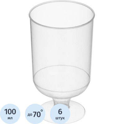Рюмка одноразовая 100мл, КРИСТАЛЛ прозр., КОМУС ПС 6шт/уп