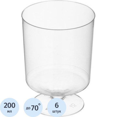 Бокал одноразовый д/вина Комус 0,2 мл,кристалл,ПС 6шт./уп. 12уп./кор. Росси