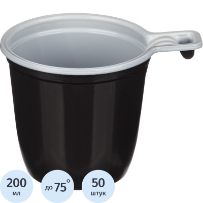 Чашка одноразовая кофейная 200мл, двухцветная, бюджет, КОМУС ПП 50шт/уп