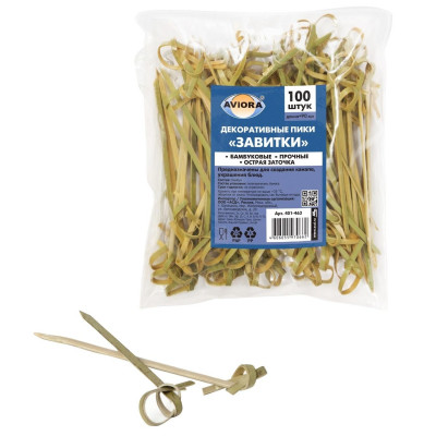 Пика для канапе бамбук Завитки 90мм 100шт/уп 401-463