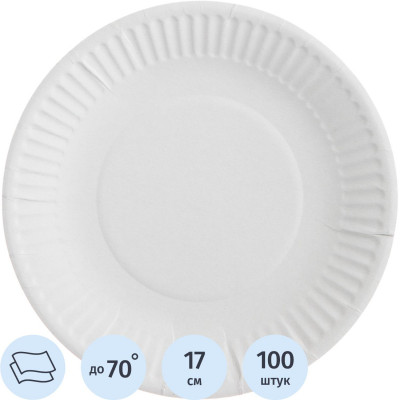Тарелка одноразовая бум., d 170 мм, белая, КОМУС, 100шт./уп.10уп./кор
