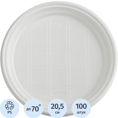 Тарелка одноразовая d-205мм, белая, бюджет, КОМУС ПС 100шт/уп
