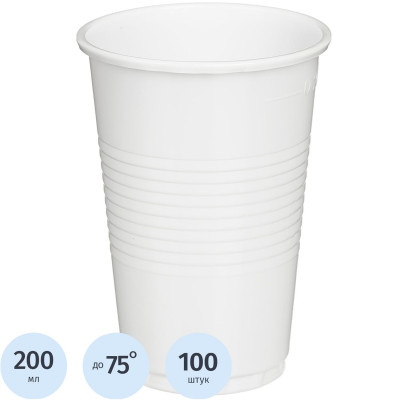 Стакан одноразовый 200мл белый для хол/гор., эконом, КОМУС ПП 100шт/уп