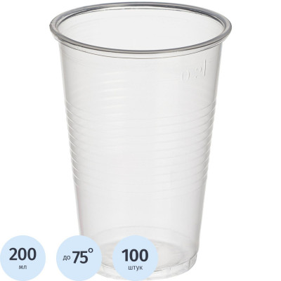 Стакан одноразовый 200мл прозр., для хол/гор., КОМУС ПП, 100шт/уп