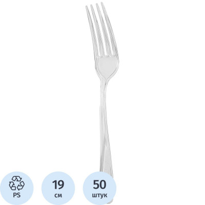 Вилка одноразовая 190мм прозрачная ПС 50шт/уп