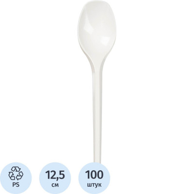 Ложка одноразовая чайная 125мм, белая, КОМУС ПС 100 шт/уп