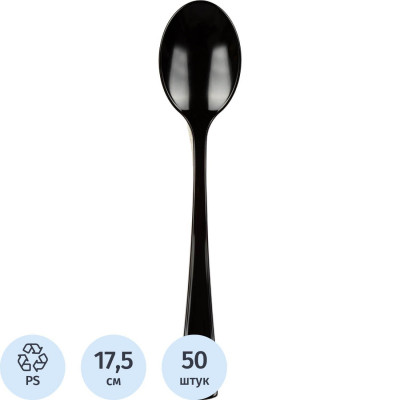 Ложка одноразовая столовая 175мм, черная , ПС 50 шт/уп