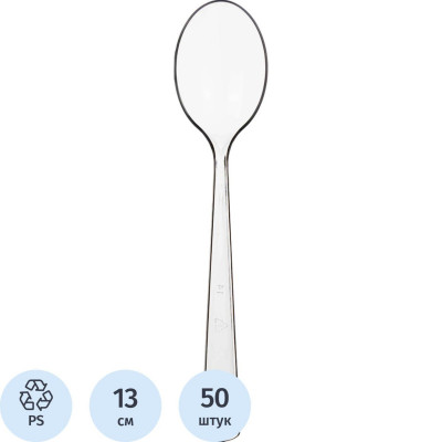 Ложка одноразовая чайная 130мм прозрачная ПС 50шт/уп