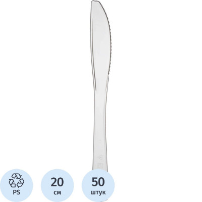 Нож одноразовый 200мм прозрачный ПС 50шт/уп